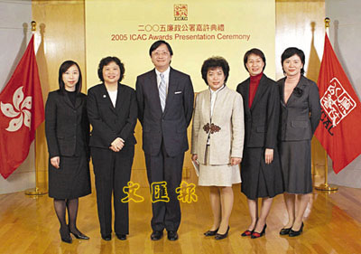 廉政專員黃鴻超(左三)昨日頒授嘉許狀予41名廉署人員,表揚他們在調查多宗貪污案件及防貪宣傳教育的表現卓越。 廉政公署圖片