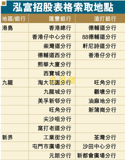 泓富招股表格索取地點 (圖)