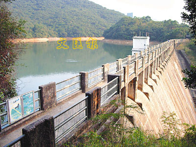 在下香港仔水塘這邊廂是平靜的水塘,那邊廂卻是高聳的堤壩。