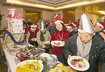 一百六十八位獨居長者出席第3屆聖誕老人慈善派對。本報記者張立新 攝