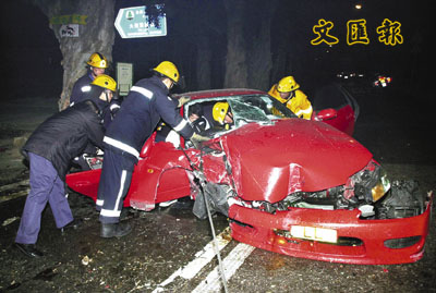 【本報訊】一輛掛有「9413」(諧音「九死一生」)車牌的跑車,昨凌晨駛經粉嶺時,失事撞毀路牌及大樹後車頭盡毀,司機被困車內受傷,需由消防員救出,他被懷疑醉酒駕駛,其父則謂:「都叫佢換鱄茖挾P啦,個牌咁衰!」