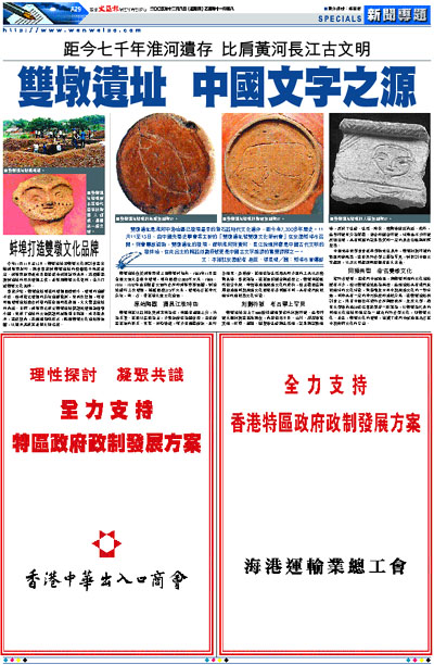 雙墩遺址是淮河中游地區已發現最早的新石器時代文化遺存,距今有7,300多年歷史。11月11至13日,由中國先秦史學會等主辦的「雙墩遺址暨雙墩文化研討會」在安徽蚌埠市召開。與會專家認為,雙墩遺址的發現,證明淮河與黃河、長江流域同樣是中國古代文明的發祥地,在此出土的陶器刻劃符號更是中國古文字起源的重要源頭之一。