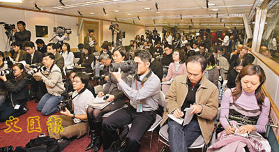 ■各大傳媒的記者,均積極為世貿會議來臨作好準備。 本報記者潘達文 攝