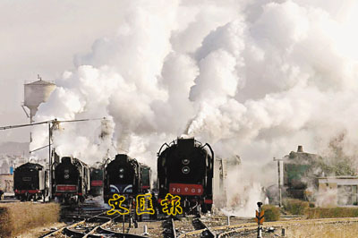 7日,最後一批「前進」型蒸汽機車在內蒙古集通鐵路大板機務段整裝待發。目前,運行在內蒙古集(寧)通(遼)鐵路上的中國最後一批「超期服役」的蒸汽機車將被新型內燃機車所取代,並於今年內全面退役。集通鐵路是目前世界上唯一一條以蒸汽機車作為牽引動力的鐵路正線。 新華社
