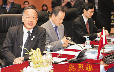 ■9日,中國外交部長李肇星在馬來西亞吉隆坡會議中心出席中國—東盟部長級會議。新華社