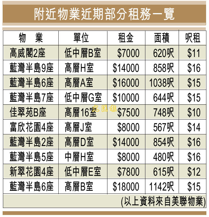 附近物業近期部分租務一覽 (圖)