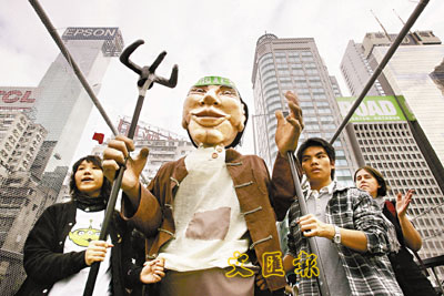 【本報訊】(記者 陳朗昇)向來關注第三世界國家的樂施會昨天舉辦「巨聲行動日」,以巨型農夫、米飯人及棉花人配以鑼鼓喧天的敲擊聲,表示向歐美強國表明發展中國家人民對公平貿易的強烈訴求。這次遊行人數雖只逾百人,但就為未來一星期針對世貿會議的多項遊行活動,揭開序幕。