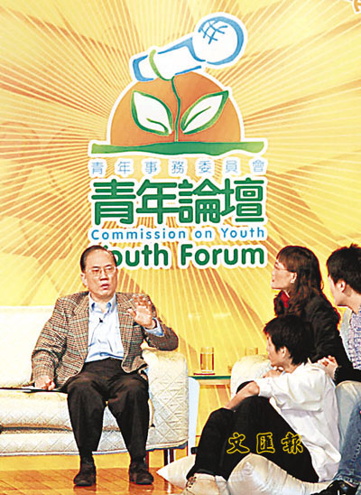 曾蔭權出席青年論壇,與代表親切交流。本報記者潘達文 攝