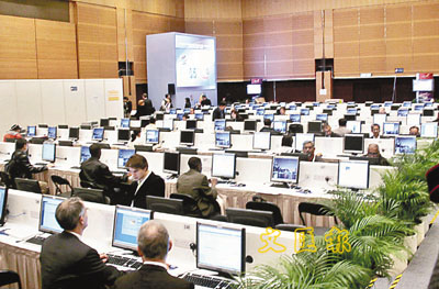 新聞中心設有逾千台電腦,供採訪記者使用。本報記者潘達文 攝