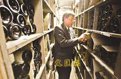 ■酒窖主人展示歷劫的美酒Opus One 1997。 美聯社