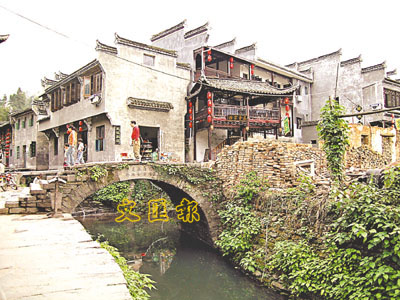 汪口,古稱永川,建村於北宋大觀三年(1110年),有18條從村後直通河邊的主巷道,每個臨河巷道口都建有一個溪埠,因居江灣與段莘河流的匯合處,村子三面環水,故名「汪口」。汪口官路正街的店舖得頗具地方等色,一般為前店面、中起居、後伙房、樓倉庫的布局形式,其古建築俞氏宗祠氣勢宏偉,布局嚴謹,工藝精妙,是名副其實的「江南第一祠」。