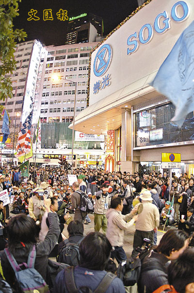 ■反世貿會議示威者,昨晚在銅鑼灣舉行燭光晚會。本報記者李志樑 攝