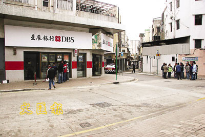 警方封鎖發現可疑物品的星展銀行附近路面調查。 本報記者蔣焯文 攝