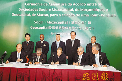 GEOCAPITAL公司與莫桑比克兩間公司-SOGIR及MOZACAPITAL日前在澳門特別行政區行政長官何厚鏵等嘉賓的見證下,在澳門舉行簽約儀式。三方協議於非洲葡語國家莫桑比克成立一聯營公司,並根據早前GEOCAPITAL公司與贊比西谷(Zambezi Valley)規劃及發展局簽訂的合作意向書,共同開發並推廣贊比西谷流域。