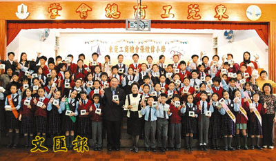 ■王柏源主席與東莞工商總會張煌偉小學師生於「愛心小錢罌」籌善款活動上合影。