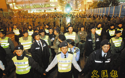昨晚當遊行和平散去後,10名韓國農民猶如一般的訪港旅客般在灣仔一帶閑逛,突見一班騎警迎頭而來。雙方雖然在示威場上誓不兩立,但離開了示威場後,感覺頓然不同,農民竟爭相向騎警了解其所駕的電單車售價和保養秘訣,雙方相談甚歡,騎警還在示威者的鼓上簽名。世事無常,由此可見一斑;職責在身,各為其主、理想,大概就是最好的註腳。
