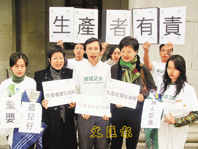 地球之友向立法會表達意見,希望議員能促請政府盡快落實生產商責任立法工作。 本報記者俞鯤 攝