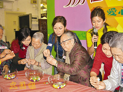 楊思琦、葉翠翠、陸詩韻等到護老院探訪,跟一班長者相處親切。