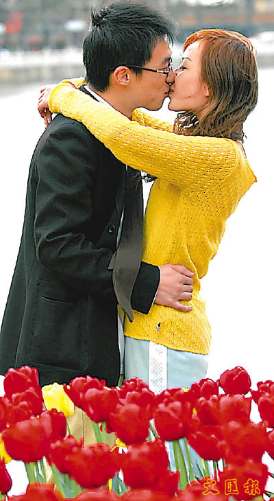深情的擁抱,是女孩對感情認真的表現。 新華社