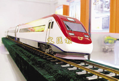 ■輕軌車站均採用高架方式進行設計建設,全線實行全封閉、公交化的運營模式,圖為輕軌列車模型。
