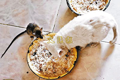 [2005-12-19] 老鼠與貓同進食齊玩耍 放大圖片