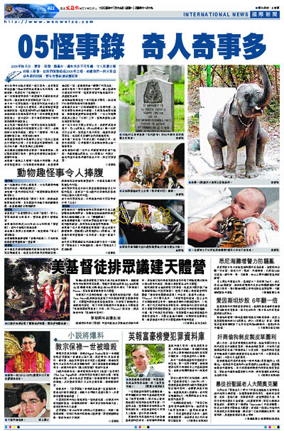 2005年除天災、戰爭、恐襲、騷亂外,還有很多不可思議、令人悲喜交雜的奇人奇事,在我們倒數迎接2006年之際,就讓我們一同分享這些有趣的回憶,暫忘世事紛擾送舊迎新: