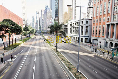 ■警方完成清場後,告士打道一帶恢復平靜。本報記者劉國權 攝