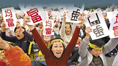 「成立經發會,開始拚經濟」、「女兒喜事辦完了,我要開始拚經濟」、「兒子結婚後,我總算可以專心拚經濟」、「國民黨選出黨主席後,就可以一起拚經濟」……陳水扁這些「豪言壯語」已經說了5年多,但台灣經濟真的拚上去了嗎?在島內日前舉行的「三合一」選舉中,民眾給出最有力的回答:民進黨大敗後,台灣股市第一個交易日,股價指數就上漲119點,其中有關大陸的「中概股」更是全部走紅。分析人士指出,陳水扁當政以來,「台獨」意識形態已使島內民眾的生活水準大幅下降,幾乎倒退10年。