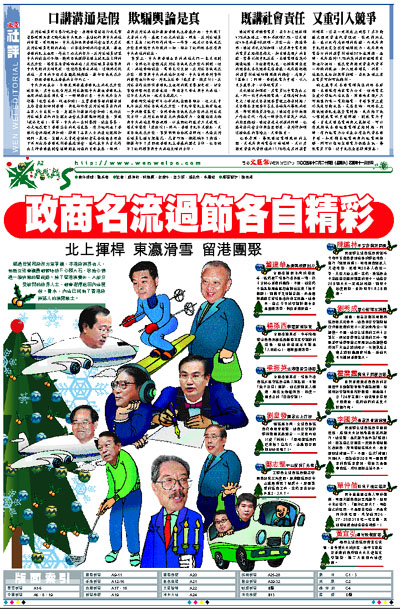 經過世貿和政改方案爭議,本港政商界名人,包括立法會議員都暫時放下心頭大石,收拾心情過一個快樂的聖誕節。除了留港消費外,大部分受訪問的政界人士,都會選擇返回內地度假。看來,內地已成為了香港政商猛人的消閒樂土。