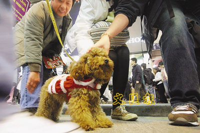 主人為小狗添上聖誕服飾,街上洋溢著一片聖誕氣氛。本報記者羅蘭蓉 攝