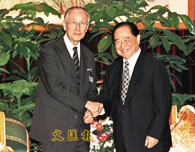 ■汪道涵1998年10月14日下午在上海和平飯店會晤台灣海基會董事長辜振甫。資料圖片