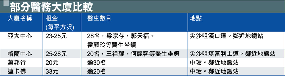部分醫務大廈比較 (圖)