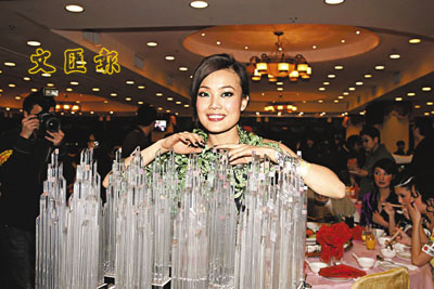 【本報訊】(記者 李思穎)容祖兒、楊千嬅、何韻詩傳因爭獎而鬧不和,不過三人在前晚的頒獎禮場合,台上台下都有談有講,狀甚老友,先是阿詩和Joey手拖手進場,接著在慶功宴時,千嬅和阿詩便拿著一部相機細心研究,一舉一動顯盡友情的存在。當晚奪得八個獎項的大贏家容祖兒,竟然第一時間是搽白花油,也許頒獎禮過程太過緊張,加上座位近於喇叭旁,兼且暈車浪,不過抵達慶功宴後已經放鬆不少,沒有大礙。阿詩被Joey拋離,她平常心說:「很替對方開心,她是小天后,自己重質不重量,最開心是首度奪得『勁爆女歌手』。」十二月三十日便是梅艷芳死忌,阿詩透露這幾天會有紀念活動,自己的成績對師傅亦有交待。