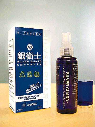 快踏入流感高峰期,在空氣中,可能已存有不少的細菌與病毒。想減低受感染的機會,其中一項就要保持環境的衛生。來自韓國的品牌「銀衛士」長效納米銀消毒液,利用高純度的純銀,研製成10納米以下的銀微粒子,再混合酒精、純水及專利配方,製成高效殺菌的噴劑。電腦鍵盤及滑鼠、電話、大門及窗戶把手、電梯按鈕、雪櫃門邊、玩具及普通口罩等,只要一經噴灑於物體上,納米銀微粒便能牢固的黏附在其表面,而且能持續發揮高效殺菌消毒能力,有效期更長達兩個月以上。