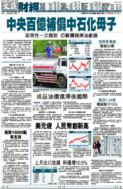 中石油發言人畢建國證實,集團沒有獲中央提供相關補償,而煉油業務佔集團比例並不大。市場認為,中石油可藉著高油價獲利,從而彌補煉油業務經營不佳影響,影響不及中石化大。