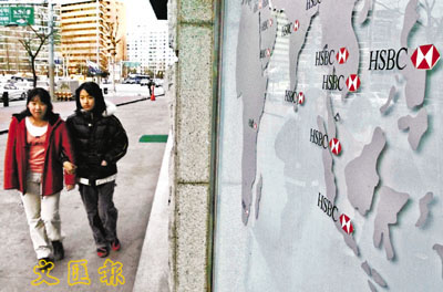 ■匯控在亞洲區的版圖不斷擴張。圖為匯控韓國總部的門外。彭博