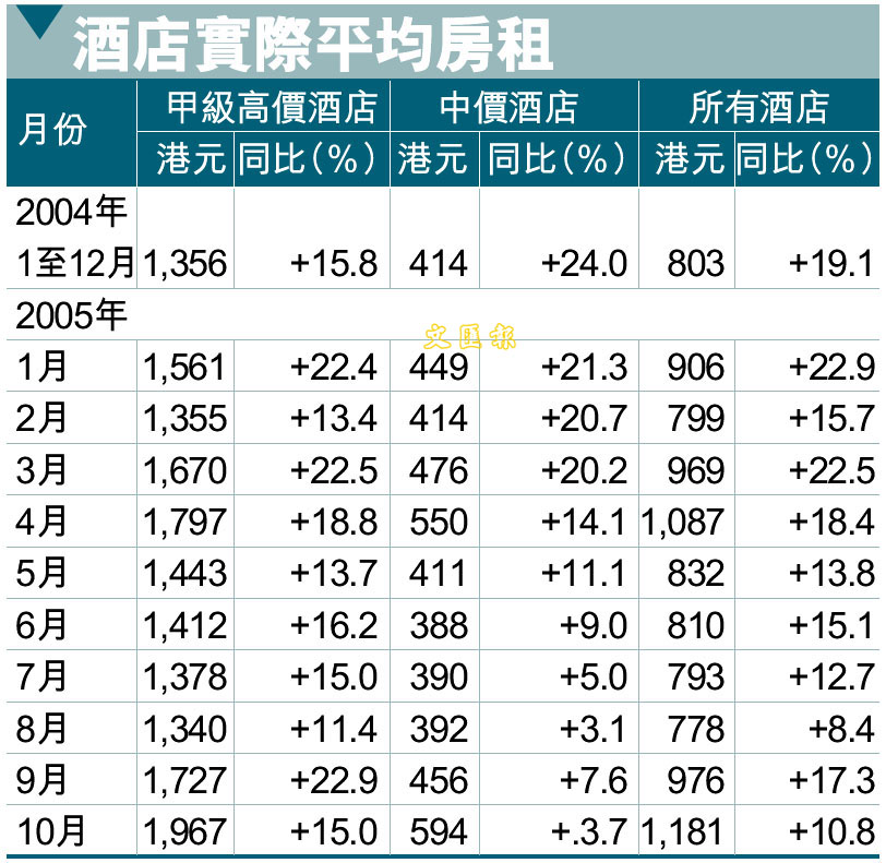 [2005-12-29] 酒店實際平均房租