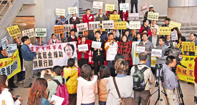 多個團體昨到房委會請願,要求房委會即時免租2至3個月及取消租援3年要搬遷的規定。 本報記者趙焜崗 攝