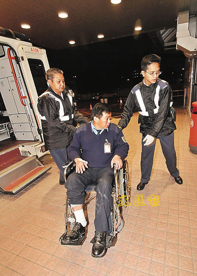【本報訊】一名盡責護衛員,昨日凌晨在沙田廣場商場當值時,發現一間時裝店燈箱疑因電線「短路」過熱起火,連忙擊破消防鐘玻璃面按動報警及匆忙拉喉灌救,因而手被割傷及扭傷腳,但仍負傷救火,在消防員到場前將火救熄,令火勢不致蔓延,後需送院敷治。