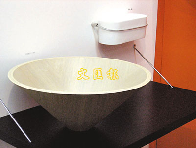 錐形設計、加上橡木材料製造而成的面盆,帶出大自然感覺。(意大利/$11,180)