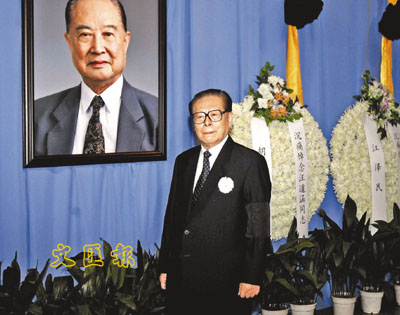 ■江澤民親到上海龍華殯儀館為汪道涵送別。 新華社