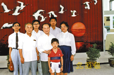■1986年,汪道涵與第二任妻子孫維聰(右一穿白衣者)及幼子汪雨(前穿紅衣者)在休假。 本報上海傳真