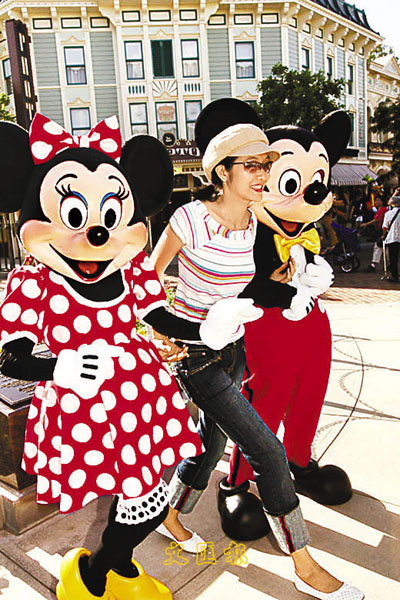 米奇老鼠不敵禽流感雀鳥,屈居第二。圖為遊客攬住米奇老鼠、米妮妹妹齊齊向前進。