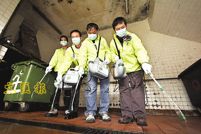 【本報訊】(記者 朱樂汶)新年人人都祈求身體健康,不過要擁有健康體魄,優質的生活環境不可或缺。近年在本港出現的兩大「病毒殺手」—禽流感和沙士,都是經由空氣傳染,若長期處於空氣污染的環境,亦很容易令人患有呼吸道疾病。為宣傳加強市民對改善空氣的訊息,多個團體昨日在屯門區合辦「清新空氣大行動」同樂日,並組成「清新空氣特遣隊」到區內屋苑的垃圾房,噴灑清新環保液,淨化臭氣。