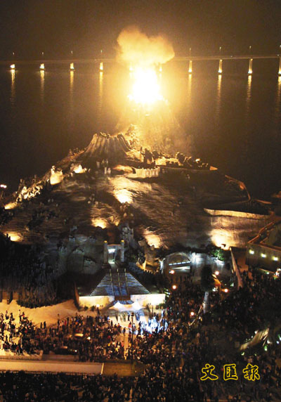 【本報訊】澳門消息:剛於除夕夜隆重開幕的澳門首個主題公園「漁人碼頭」,開業第4天即發生嚴重意外。一對專程由內地到澳門參觀的母子,昨日在象徵性建築物火山內玩「烈焰激流」時發生機械故障,兩母子所乘坐的機動船與另一部機動船發生劇烈碰撞,兩人疑被拋出艇外跌落水道內,母親為保護愛子而身受重傷,目前仍在醫院接受治療,小童則受輕傷已出院。漁人碼頭方面即時將火山內部封閉停用,並作詳細檢查。