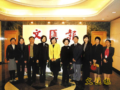 ■臧明華(左四)、李陳嘉恩(右五)、梁美寶、溫祝欣及林惠芳(右二)到訪本報,與本報副社長劉永碧(左五)及報館領導合照。本報記者黃展鵬 攝