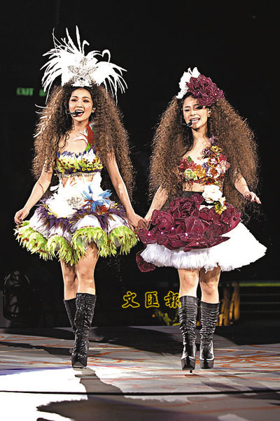 【本報訊】(記者 許紹基)Twins一連四場的「Twins一時無兩演唱會」昨晚假紅館正式開鑼,今次演唱會的舞台設計成一森林,舞台的四周都鋪滿了綠草,舞台中央還有一座可以升起的巨型假火山和大樹,整個場景一共花費了過百萬元搭建,甚落重本,相信可令Twins的擁躉極盡視聽之娛,睇得很開心。