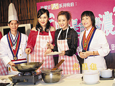 呂晶晶(中)、黃麗梅(右)和馮梓瑩換上圍裙落廚,要演身手。