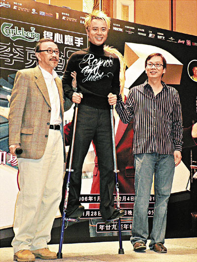 李克勤踩上高蹺,據稱是象徵步步高升。