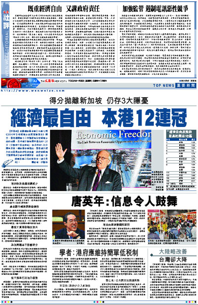 ¡@¡i¥»³ø°T¡j¡]°OªÌ¡G¦óÄRµX¡^¬ü°ê¶Ç²Î°òª÷·|¤½¥¬²Ä12´Á¡m2006¦~¥þ²y¸gÀ٦ۥѫ׫ü¼Æ³ø§i¡nÅã¥Ü¡A»´ä³sÄò²Ä¤Q¤G¦~Àò¿ï¬°¥þ²y¸gÀ٦ۥѪº¦a°Ï¡A¥B©Ò±o¤À¼Æ¬°¾ú¦~³Ì¨Îªº1.28¤À¡]¤À¼Æ·U¤p±Æ¦W·U«e)¡A¸û¥h¦~ªº1.35¤ÀÄò¦³§ïµ½¡C¶Ç²Î°òª÷·|«ü¥X¡A»´ä±o¤À´£¤Éªº¥D¦]¬O¦b¬F©²°]¬Ft¾á¡B¬F©²¹ï¸gÀÙ¤z¹w¨â¶µµû¤À³£¦³©úÅã§ïµ½¡A¨Ã¥B¶i¤@¨B©ßÂ÷±Æ²Ä¤G¦ìªº·s¥[©Y¡C